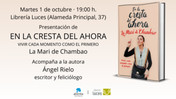 Acompaña a la autora el escritor y feliciólogo Ángel Rielo.